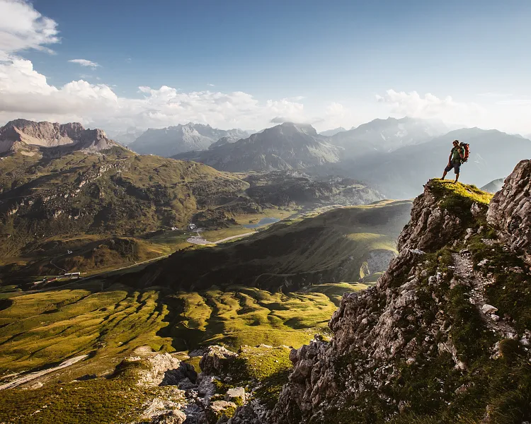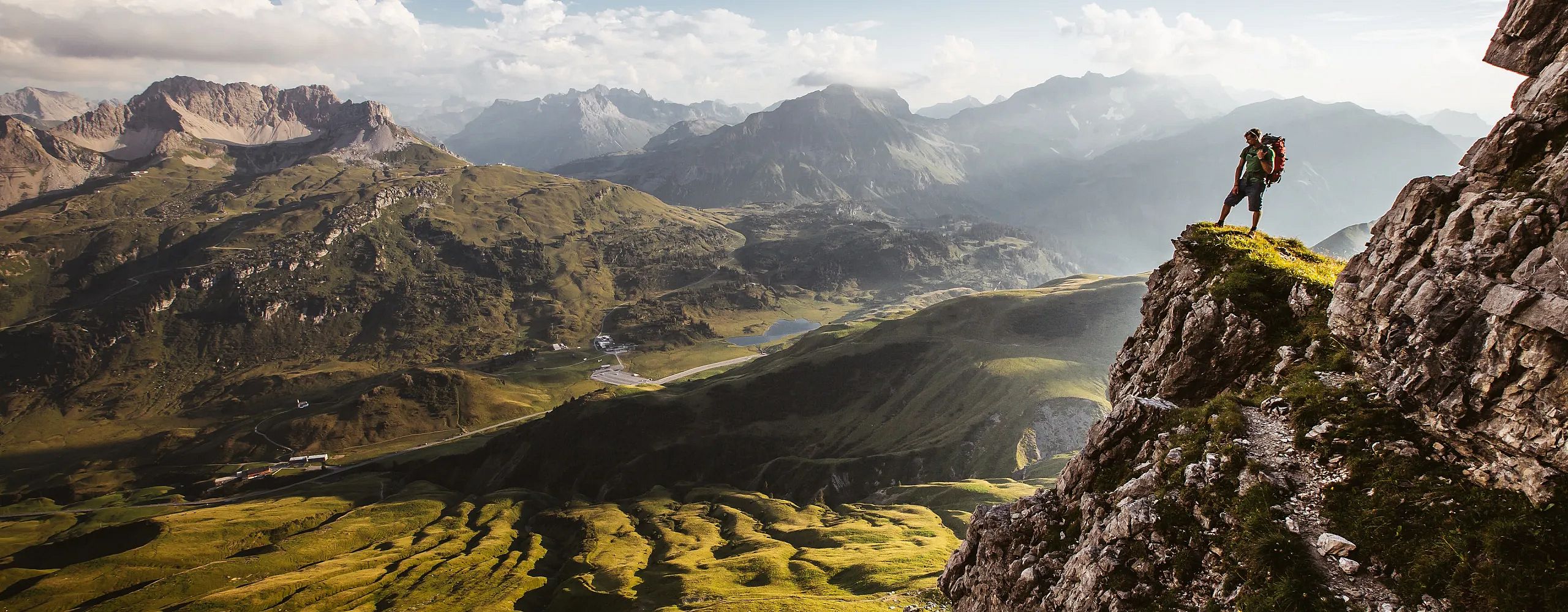 Wanderung bei Sonnenaufgang am Arlberg in der Nähe vom Hotel Jägeralpe