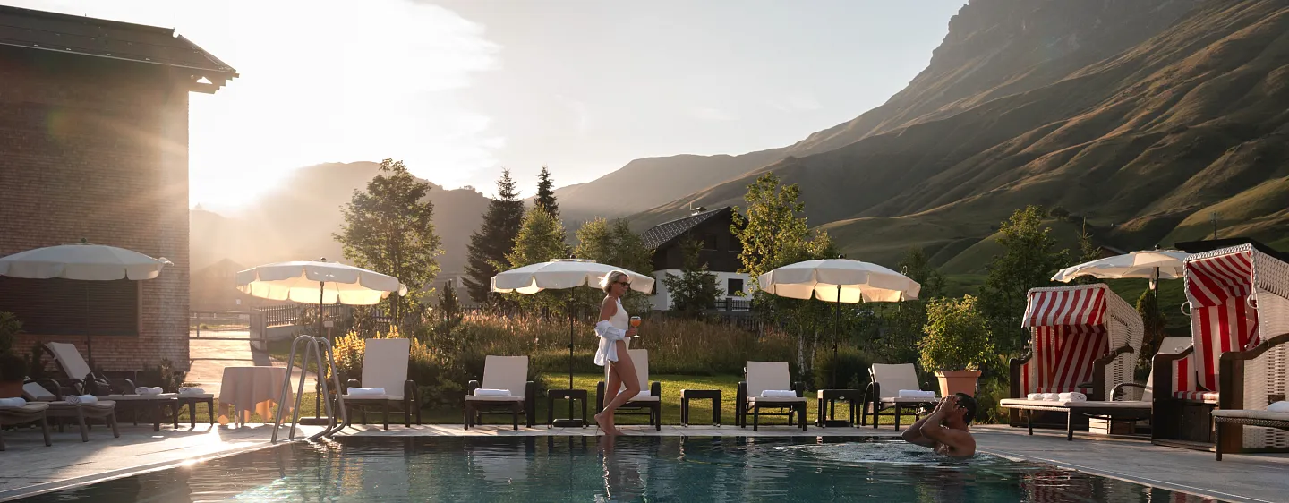 Wer den Sommer am liebsten in den Bergen verbringt, ist bei uns genau richtig. Unseren Hausgästen bieten wir wöchentlichfünf geführte Bergwanderungen mit kostenloser Beteiligung an. Ihre Wanderlust wird im Hotel Jägeralpe mehr wie belohnt. Gönnen Sie sich eine Auszeit in unserem neuen Wellnessbereich, lassen Sie sich von unserer regionalen Küche begeistern und genießen Sie das Ambiente der Zimmer & Suiten. Als besondere Highlights bieten wir Ihnen unser Bergfrühstück auf der Hochalphütte, ein Private Spa auf 2.000 Metern und unsere Weinverkostung mit Oswald Jäger.